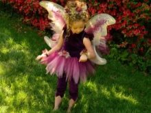 - Elegant dresses for young children are best chosen with a fluffy skirt, a length just below the knee. If mom or grandmother are needlewomen, they can crochet or knit wings, and the baby will turn into a fairy or a butterfly. A magic wand decorated with an asterisk will help to complement the image.