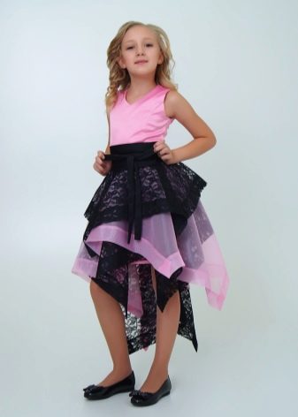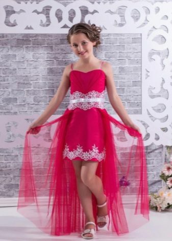 - 2-in-1 dress with removable skirt - a very convenient and practical solution. In a long dress, the girl will be able to come to the official part of the event, and in a short dress - at the disco.