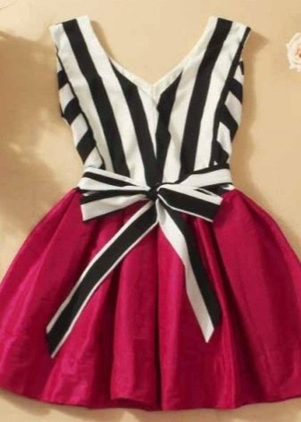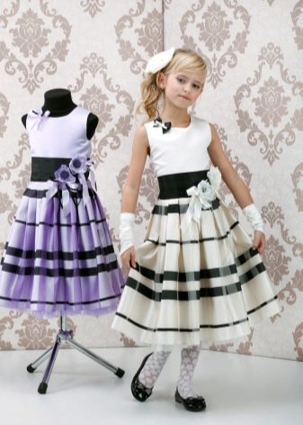 - focus on the natural data of the child: a thin girl will suit a dress with a fluffy skirt, chubby - with an A-shaped silhouette, vertical inserts and stripes;
