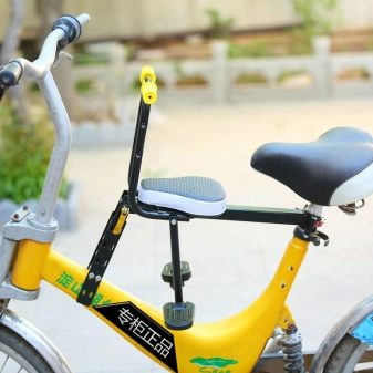 A bicycle seat has a higher cost in comparison with the previous version, but it can transport children from a very young age, as well as protect them from possible injuries. Present on sale models with stepsthat can be used for children with disabilities.