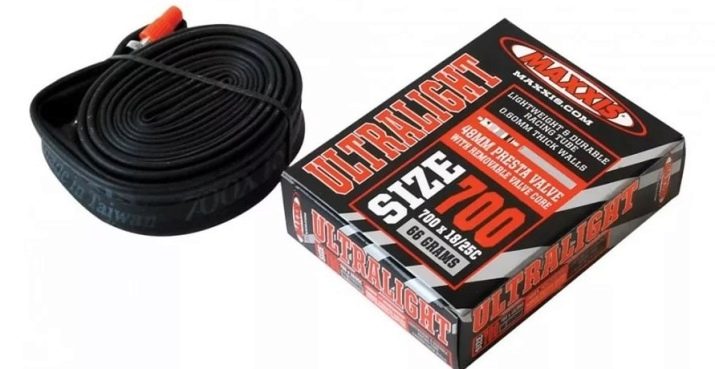 - Maxxis flyweight - cameras with special lightness. They were loved by professionals, since the thickness is only 0.4. Equipped with ultra-light flipper, which helps in getting rid of excess weight. Presta nipples are suitable: 700x18 / 25C, 26X1x1.9 / 2.125.
