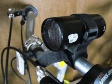 - Avantree cyclone. Model for mounting on the frame. Works with connection via Bluetooth, AUX, there is a slot for a memory card. The case is shockproof, the design is interesting.