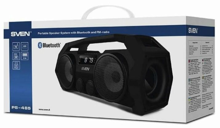 - SVEN PS-465. Speaker with stereo sound, there is a calibration of low and high frequencies. It works via Bluetooth, supports USB connection, there is a slot for memory cards. The stylish design of the case is complemented by a battery for 6 hours of battery life.