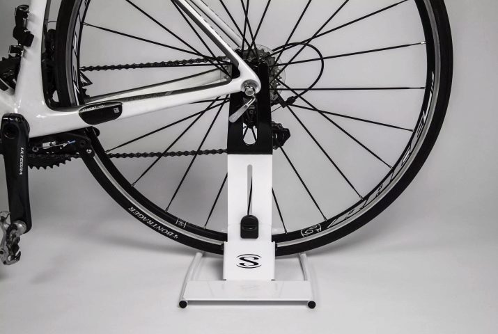 A kind of floor mount that secures the rear wheel. The fastening is represented by metal and plastic options, the former are distinguished by a large operational resource in comparison with plastic products. The stand occupies a minimum of usable area in the apartment, firmly fixes the unit in one place, however, such varieties have a high cost.