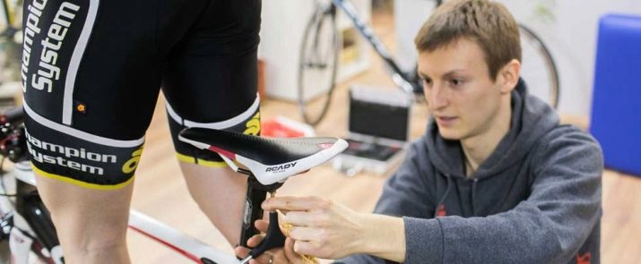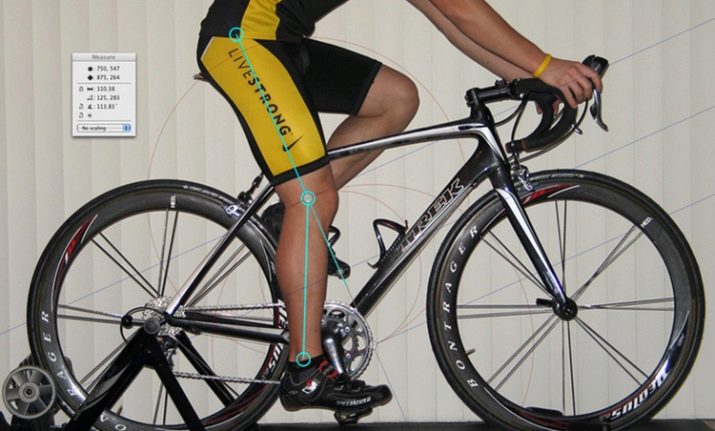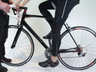 - sit on the saddle and pay attention to the position of the knees, their level should be vertical with respect to the pedal axis (for testing, use the position of the leg at the lowest point, the knee should not be pulled forward).