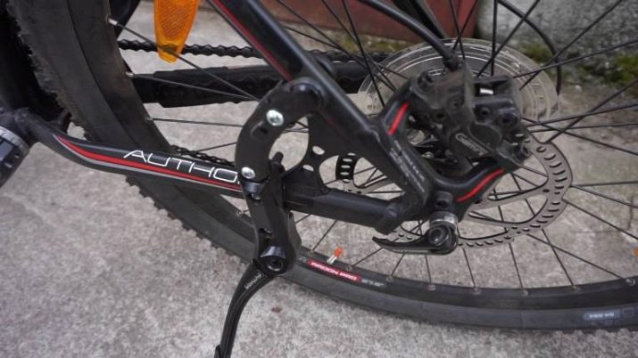 The stand mounted on the drive wheel has several advantages. For example, this allows you to heavily load the trunk. Weight acts on the rear wheel, and the front counteracts the fall. This is a very convenient option for tourists: you can not only load the trunk, but also hang something on the front of the bike.