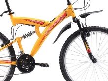 - Mission FS 26. Great two-suspension with 26-inch wheels. The steel frame design is designed for both women and men. The product is available in blue and yellow with a metallic tint, as well as in blue and orange. A suspension fork with a stroke of 50 mm extinguishes the bumps when driving on rough roads. V-Brake rims are responsible for driving safety. The wheels are equipped with YD-065 26X2.35 tires. ” The price of the model is 9990 rubles.