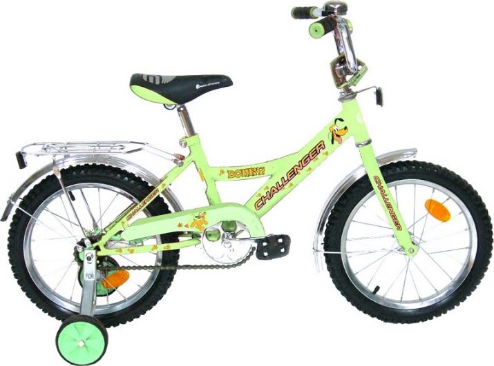 - Donky 12/14/16. The children's design is designed for children 3-7 years old, depending on the model of the wheel can be 12, 14, 18 inches in diameter. The light green bike is suitable for both girls and boys. The steering wheel is equipped with rubberized pads so that the hand does not slip when riding. The pedals have a relief pattern for better fixation of the legs. The steering wheel and seat are adjustable in height. The chrome-plated chain guard prevents dirt from entering and ensures an even ride. The bike is very maneuverable and comfortable. The kit includes side safety wheels, which can be removed when the child learns to ride independently. The price of products varies depending on the size of the wheels: 5100/5350/5550 rubles.