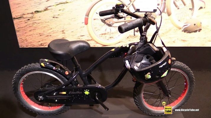 These kids bikes are created with mechanical brake elements. The design of the bike has a support, which is made of stainless metal materials. The transport has a roll column, front and rear hub.