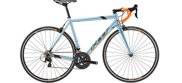 Mid-level road bike.Designed for professional riders and just for lovers of fast driving. It is noteworthy that the frame is made of aluminum, while Felt brand products are mostly associated with carbon fiber. But it is still present in this model: a fork and a seatpost are made of it.