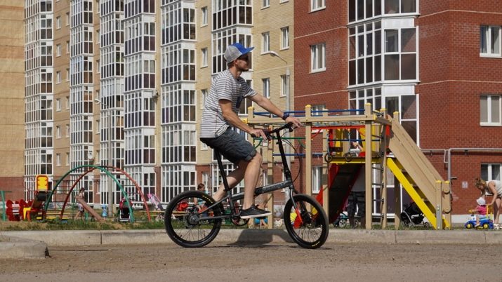 What is remarkable the frame is not only elegant, but also distinguished by mechanical strength. The weight of the structure is 12.5 kg. The size of the product facilitates driving on the sidewalk and in general on a city street. An unusual feature of the model is the collapsible design of the lower right pen under the belt transmission. Thanks to the red accents, the bike catches your eye.