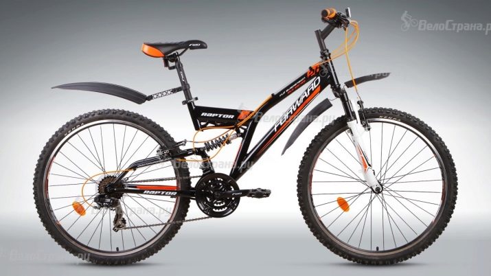 - Raptor This mountain bike is somewhat knocked out of the Forward bike range, as it is dual-suspension. This design allows you to gently overcome any bumps, but adversely affects the roll and weight of the structure, somewhat slowing down. A 21-speed bike with 26-inch wheels is well suited for real mountains or any other areas where the terrain does not have anything even remotely resembling normal roads.
