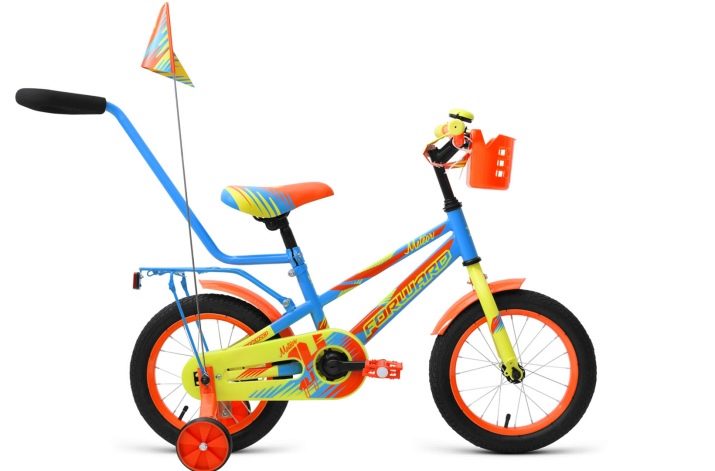 A bright bike in a typical children's color also has a bell on board and full-sized wings.