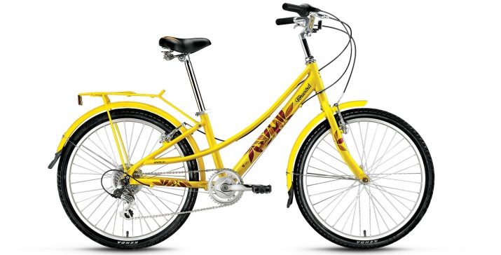 - Azure Ladies' version of a city bike with a specially lowered upper tube - to simplify the landing and disembarkation of the fair sex in long dresses. 26-inch wheels and unpretentious vibrariks are the standard for this bike, but in terms of the number of speeds a choice of modifications is available - there is a modest transmission at 7 speeds, but there are also 21.