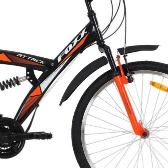 - Attack The characteristics do not differ from the Freelander model, the difference is only in dimensions and colors. The wheels are also 26-inch, the base is both the 18th size and the 20th. Two colors - black-orange and white-orange. It is worth noting that Freelander and Attack are mountain twin-suspension units, when all the previous hardtail.