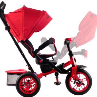 The latest model of the brand Lamborghini is designed for children 1-5 years old. Combines the benefits of previous models. Available in red, orange, yellow and black. The tricycle is equipped with a swivel housing, thanks to which the bike turns into a stroller. In this position, you can lower the seatback to a lying position and let the baby sleep soundly.