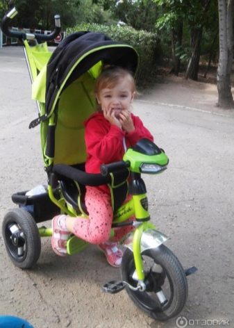 Lamborghini bike reviews are mostly positive. Parents are happy with the purchased transport for the child who has served them for several years. Maneuverability and workmanship of Italian products at a height. A big plus is considered the maximum weight of 30 kg. There is also a soft seat with a high back, which can be adjusted in three positions. If you wish, you can lower it and the child will be able to fall asleep during a walk, and a large hood will shield him from sunlight.