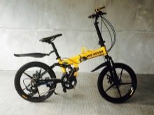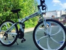 The model is available in blue, white, black and yellow. The main feature of the product is the possibility of compact folding, thanks to which it fits in the trunk of any car. The bike is equipped with a disc mechanical brake system and a gearbox with 21 speeds. The diameter of the wheels is 26 cm.