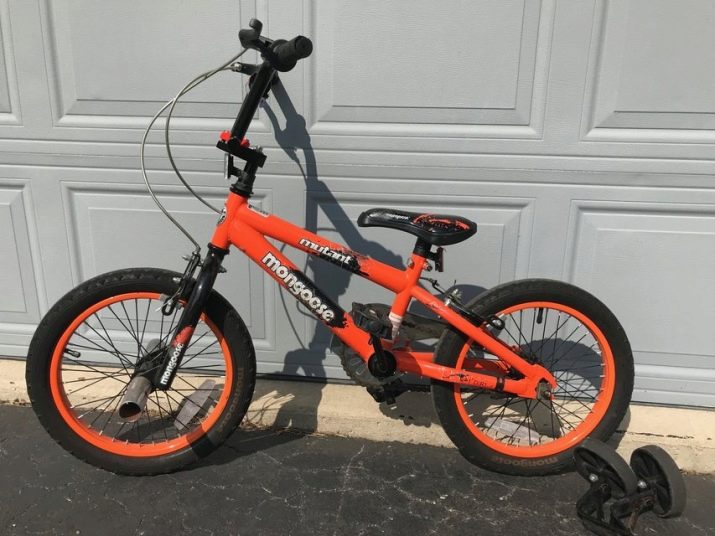 - Mutant. This children's bike for riding on well-groomed paths and park paths is suitable as a base for learning to ride independently. The model has training, removable wheels, is decorated in the spirit of BMX, decorated with stylish graphic patterns.
