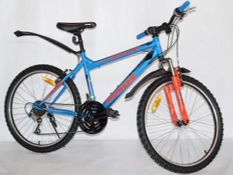 This mountain bike is most often made in black and orange colors. It has a total of 21 speeds. Such a sample is equipped with a steel frame, shock-absorbing fork, disc brake system.