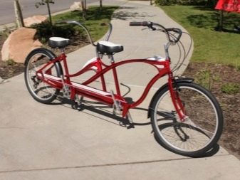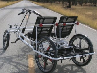 The three-wheel tandem is more stable - the rear sprockets are not connected directly to the wheel hub, but to the axis that controls the two rear wheels spinning synchronously. For this, the consumer pays even more weight and difficulty in dispersal. The efforts made by each of the bikers in such a tandem are comparable to the force with which each of them rides on their own simple bicycle - the axle and two wheels are too heavy.