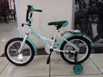 - Pama 134. 14-inch children's bike. The design of this unit is durable and simple, which will ensure safety for the child while riding. The base is made of steel, but due to the size of the device, the total weight is small. Rear foot brake, steel wings from wheel contamination, side wheels for balance and a boot. The colors are yellow, blue or white.