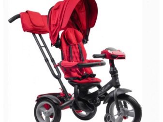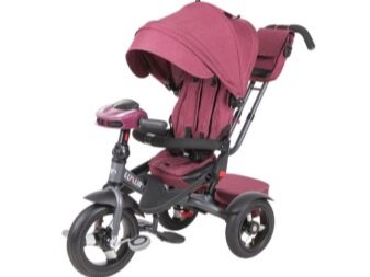 - Luxury. Special representative of the cycling industry from the Tech Team. This bike is designed for babies from 1 year to 4 years. The frame is steel, there is a safety rim and a seat belt. On the direct steering wheel there is a handle for parents.The design is three-wheeled, the front and side wings, a visor from the rain and an insert on the seat are included in the configuration for the convenience of the child. Of the accessories there is a steering toy, a backpack on the handle and a rear basket.