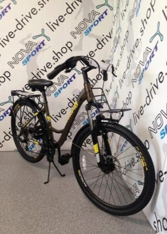 - Sprint 26. A modern representative of cycle equipment for driving both outside the city and on city roads.The durability of this bike is ensured by industrial bearings, aluminum construction, extension and rims. The disc brake system is 160 mm, the number of speeds is 21. Due to the variety in technical equipment, you can use this bike almost everywhere. This one is sturdy, lightweight and easy to operate. Two colors: black and gray. In the configuration there is a step for parking.