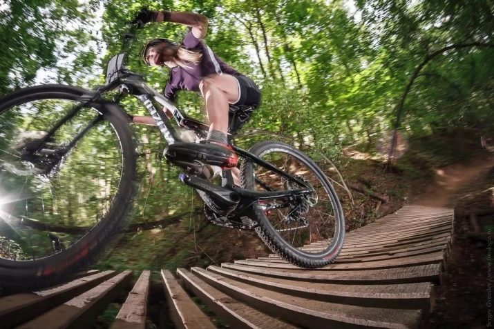 The special structure of the frame involves movement with an active forward tilt. Taking this pose, the total body weight and load is evenly distributed on the arms and legs. The cross country bike must have a front fork with a stroke of about 10 cm to provide high resistance and the possibility of blocking. And although this detail increases the acceleration of the bike, it becomes much easier to overcome obstacles.