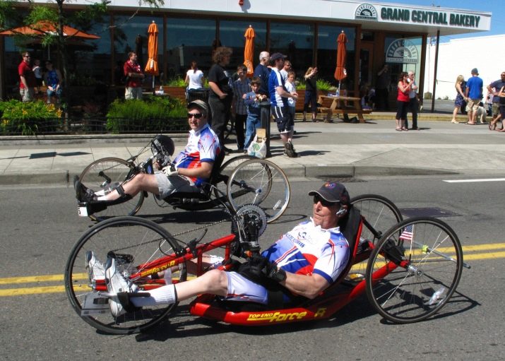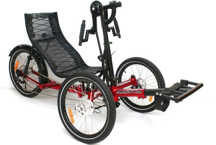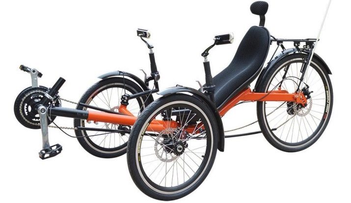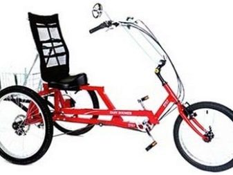 Separately, special lying body trikes. The pedals are installed in front of them, and the seat is installed in such a way that a person can be located there in a reclining position, which allows for maximum comfort during the ride.