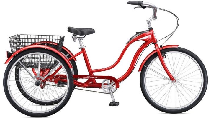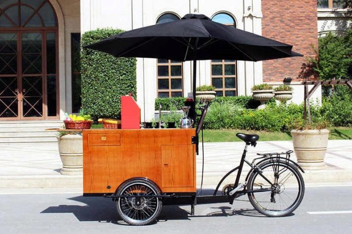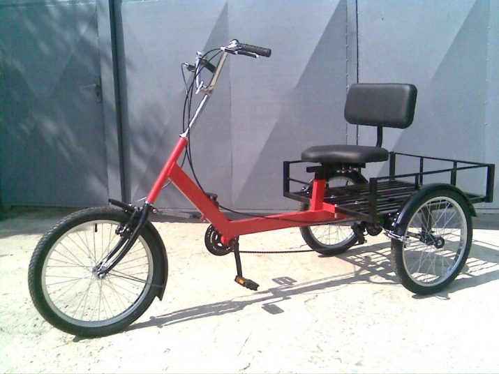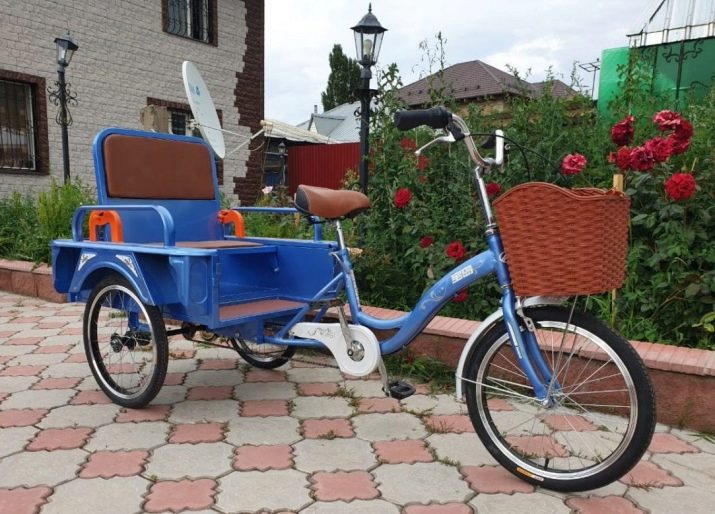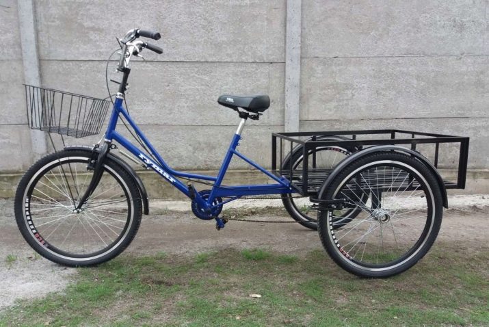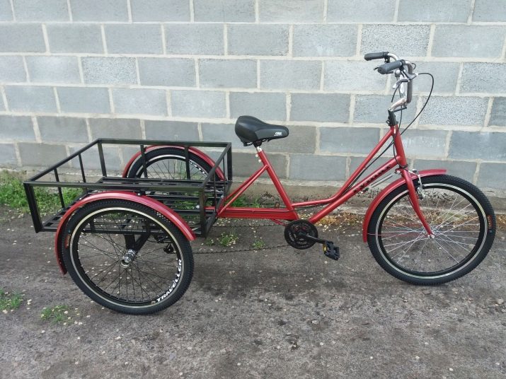 Another option is standard adult bicycles with three wheels. Such models can have either a direct or reverse deltoid design. A special compartment for transporting goods is placed between the wheels of the front and rear axles.