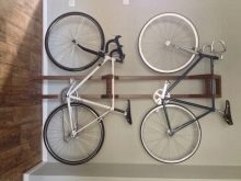 A good option is special shelf that attaches to the wall. It is a device in the form of two boards adjacent to each other with a slot in the middle. A bicycle frame is inserted into this slot.