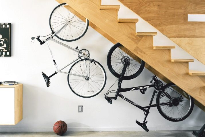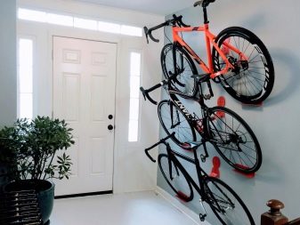 If there are several bicycles in the family, it is optimal to allocate a free angle for vertical suspension to the wall (the front wheel is located on top and the rear wheel is underneath).
