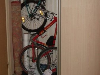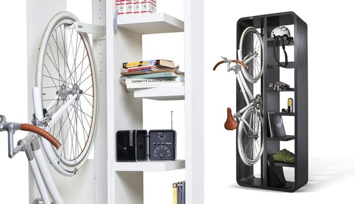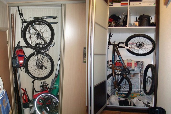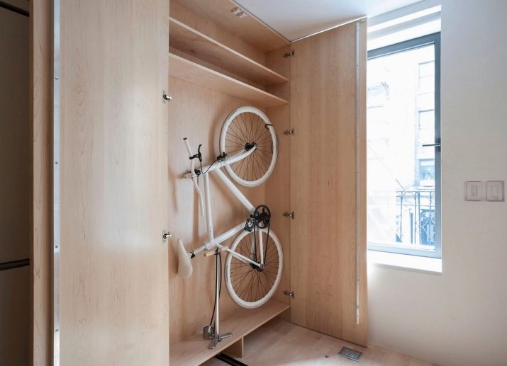 For such storage, it is possible to release (re-equip) the existing cabinet in the existing house. For the convenience of closing the door, the steering wheel and saddle will be more practical to remove.Alternatively, you can remove the doors and leave the bicycle unchanged. The cabinet will take the form of an open shelf.