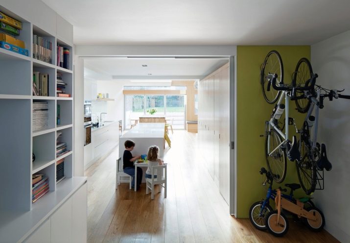 When living in small apartments, you can find a variety of ideas and methods of fastening for organically fitting the vehicle into the interior.
