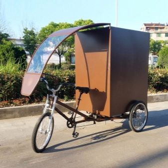 If such models can often be seen as a symbiosis of a baby carriage and a bicycle, then for adults such products are rare. They are convenient in that in this case, the rider can travel in the rain or the scorching sun.