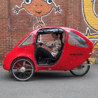 Three-wheeled bike with a cab and doors