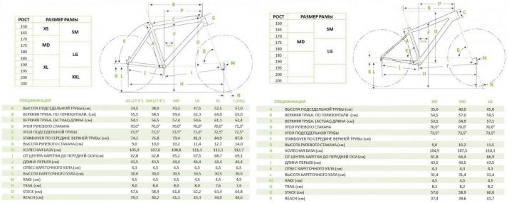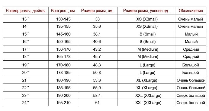 therefore different models have a special table that helps to most competently determine the required frame size - size. These tables are rarely divided into female and male, and if they are, then, as a rule, the discrepancies present in them are insignificant. So, a girl can use male sizes if you don’t have time to look for the appropriate plate to find the right bike and vice versa.