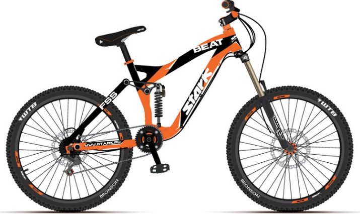- Double outboard mountain bike It differs immediately by two shock absorbers - front and rear. What kind of bike can fly at full speed without disassembling the road is just a two-suspension - its design provides the rider with maximum comfort even on a very difficult road profile. The main directions of using such vehicles are rapid downhill and freeride.