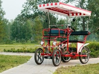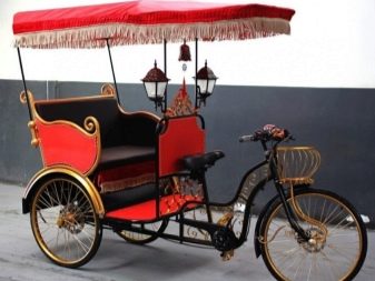 A bicycle rickshaw for transporting goods can be equipped with a wheelchair basket both in front and in the back. The same approach is taken in the production of passenger models - the cost of such a rickshaw of Russian production starts from 31 thousand rubles. The cost of vehicles with refrigerators is from 51 to 99 thousand rubles. There are models stylized as old carriages, they cost about 95 thousand rubles.
