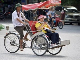 Each country that has welcomed rickshaws in its homeland has contributed something of its own to them.. And therefore, the designs of Asian models are significantly different from European or Russian rickshaws. For example, in Western countries they love three-wheeled bicycle taxis.In them, the driver is in front, and 2-3 passengers are behind him. Such wagons are open and closed roof. But inventive Vietnamese prefer to show guests the country "face". For this, the driver is transplanted behind the passengers, and he “pushes” them in front of him. Two wheels in Vietnamese rickshaws are located under the passenger part, and one - under the driver’s.
