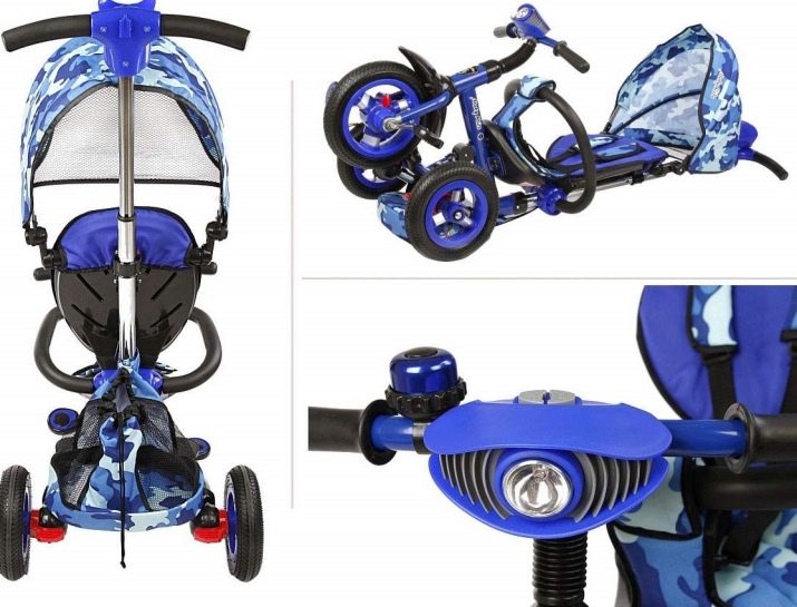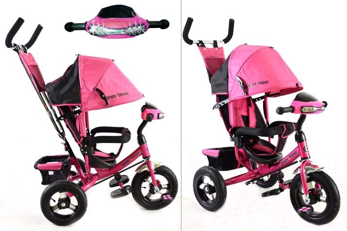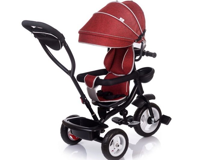 The tricycle on inflatable wheels stands out for its affordable cost, as well as standard equipment inherent in most bicycle strollers. The steering wheel can be adjusted according to the height of the child, the seat is equipped with seat belts.Such a model can be used for several seasons. Deserves special attention minimum bike weight of only 9 kilograms.