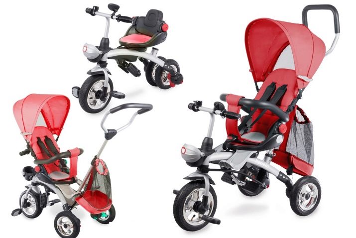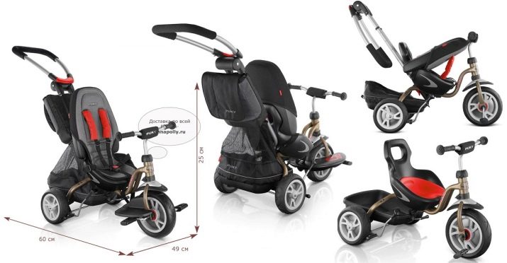 But in general, the design of a bicycle with a handle, a bicycle, a wheelchair or a transformer remains unchanged, suggesting the presence of one wheel in front and two at the rear, as well as a high handle for the parent walking behind.