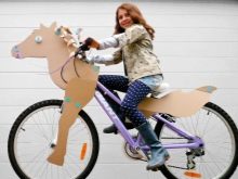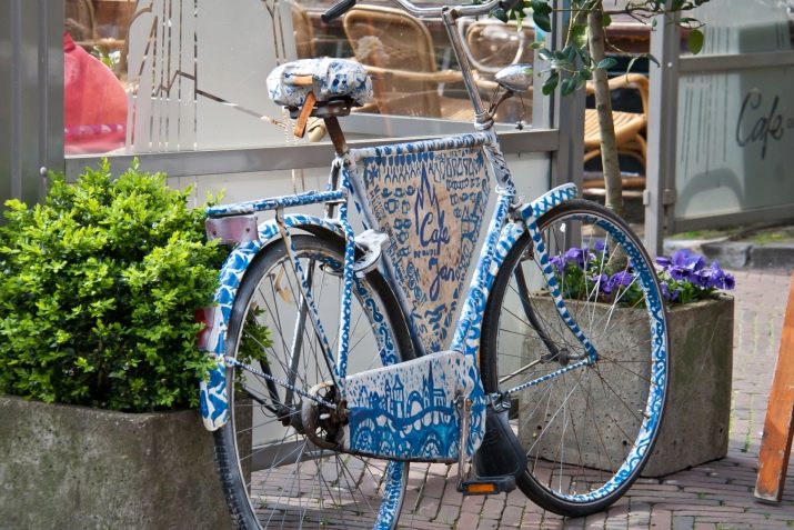 Many are in no hurry to dwell on the simple coloring of the frame, with the help of stencils they apply drawings or beautiful inscriptions. You can use various kinds of stickers, with their help decorate the product. As for the form, it is impossible to reduce the frame, but you can add various elements: an additional trunk or a decorative wicker basket, another seat or an imitation of a gas tank from a motorcycle. All changes should be made before painting.