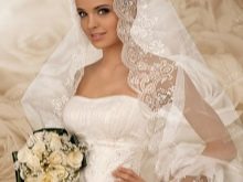 The white hood is often chosen by modern newlyweds for weddings in the church. For a wedding, it is better to choose a not too intricate hairstyle, since under the scarf it can lose shape. And under the hairstyle of complex design it is more difficult to choose a hat. It is easiest to fix a veil on the hair, but not always its style covers the head sufficiently.