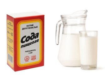 - Milk and soda. Before cleaning, remove the dust with a regular brush. To prepare the solution, you need 200 ml of milk and 10 g of soda. To process a sheepskin coat you need cotton pads. They need to be soaked in a solution for the treatment of oily stains. When cleaning contaminants, it is worth using clean cotton pads, throwing away soiled ones. After cleaning, you will need to additionally wipe the sheepskin coat with a soft cloth previously soaked in a solution of vinegar and water. After the cleaned area should be additionally wiped with a dry sponge.