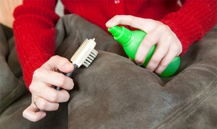 - Semolina. All contaminated areas of the product must be sprinkled with semolina. Next, you need to put on mittens made of fabric and rub the contaminated places well. All movements must be made from the edges of the spots to their center. After cleaning the stains, you should clean the entire surface, while you can use a hard brush or fine sandpaper. Instead of decoy, starch can be used.