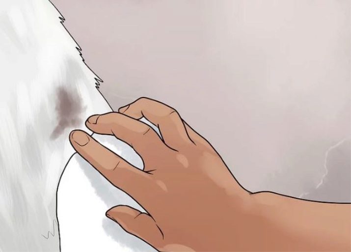 - Dampen a clean cotton cloth or cotton swab with a solvent. Squeeze out material for maximum dryness. Gently wipe the soiled fur with a swab, remove dirt. So clean the cuffs, collars.