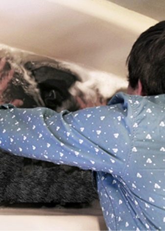 - Particularly strong contaminants are treated with foam soap, which is applied to the stains with a brush; at the same time, do not rub too hard so as not to destroy the structure of the pile;