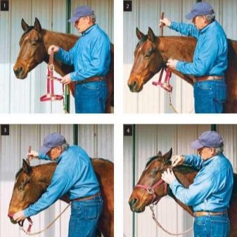 Often, nervous individuals do not want to put on a harness and begin to run amok, in these cases they can cause injury to their master. In order to prevent this from happening for the first time, the bridle is recommended to be put on a horse by a specialist who has experience in this matter. To quickly and easily put on a bridle on an animal, the following scheme should be applied.